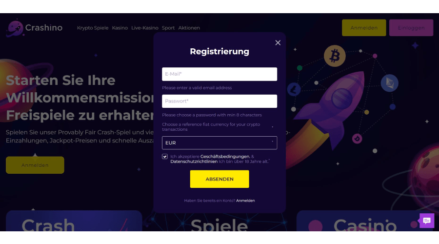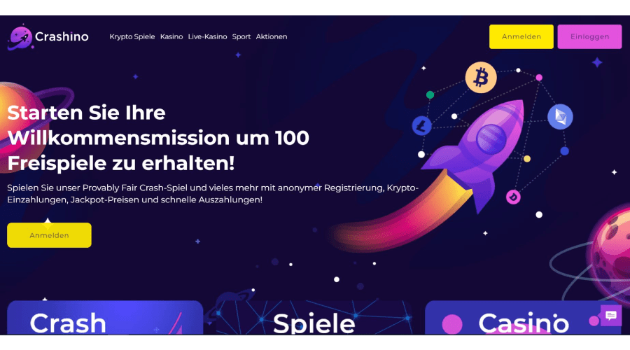Im Bereich des kryptobasierten Online-Glücksspiels sticht der Name Crashino als eine der originellsten Optionen heraus. Es wird angenommen, dass Crash die Inspiration für diesen Namen war, da es eines der bekanntesten Kryptospiele ist. Und das aus gutem Grund, denn Crash ist eines der Spiele, die in diesem Casino angeboten werden und nachweislich ein faires Ergebnis haben. Crashino ist eines der neuen Krypto-Casinos, das 2021 debütierte, nachdem sich der Markt für sie geöffnet hatte. Es erfordert nicht, dass Spieler irgendeine Art von „Know Your Customer“-Verfahren durchlaufen und akzeptiert nur Zahlungen in Kryptowährungen. Mit diesem hohen Maß an Anonymität geht jedoch die unbekannte Identität des Unternehmens einher, das dieses Bitcoin-Casino betreibt. Darüber hinaus besitzt es keine Glücksspiellizenz; es kann sich jedoch bereits um eine Beantragung handeln.