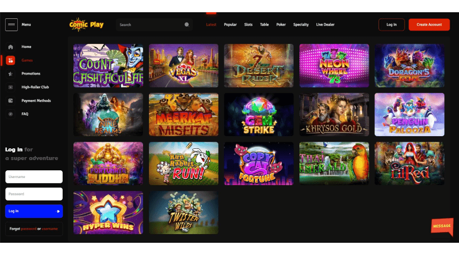 What kind of games can I play at ComicPlay Casino?